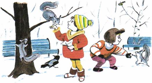 Даша с Петей ходили в городской парк кормить ручных белок.