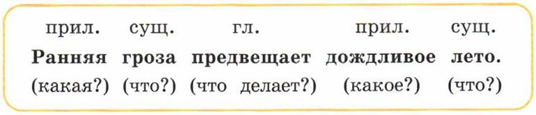 • Прочитайте предложение из схемы. Из слов каких частей речи оно состоит?