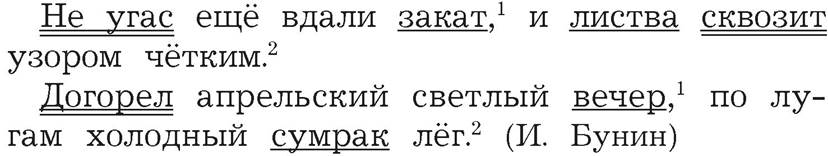 1. Кузнечики трещали в порыжелой траве перепела кричали ястребы плавно носились над полями... 2. Деревья сливаются в чернеющие массы на синем небе робко выступают первые звёздочки. 3. Ещё раз прозвенел над вами голос пеночки печально прокричала иволга соловей щёлкнул в первый раз.