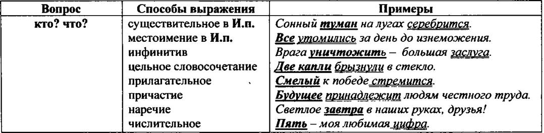 ПОДЛЕЖАЩЕЕ И СПОСОБЫ ЕГО ВЫРАЖЕНИЯ