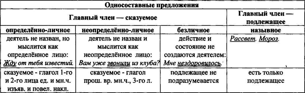 ОДНОСОСТАВНЫЕ ПРЕДЛОЖЕНИЯ