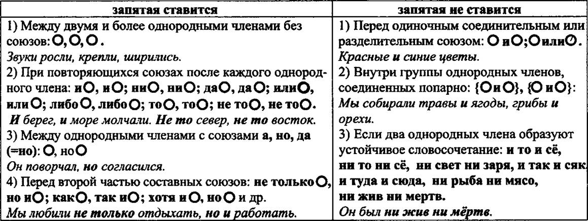 ЗНАКИ ПРЕПИНАНИЯ ПРИ ОДНОРОДНЫХ ЧЛЕНАХ