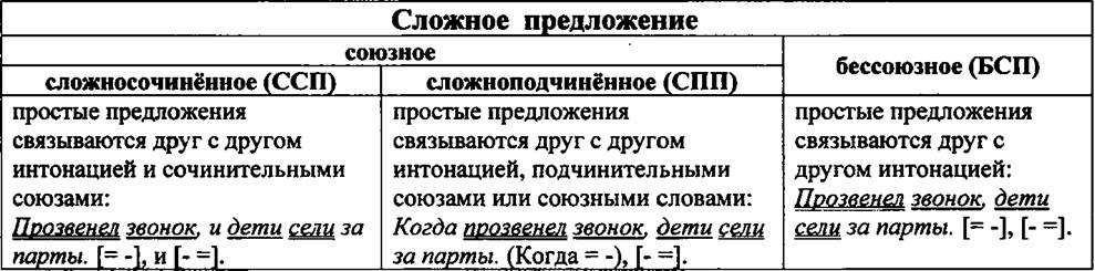 ОСНОВНЫЕ ВИДЫ СЛОЖНЫХ ПРЕДЛОЖЕНИЙ