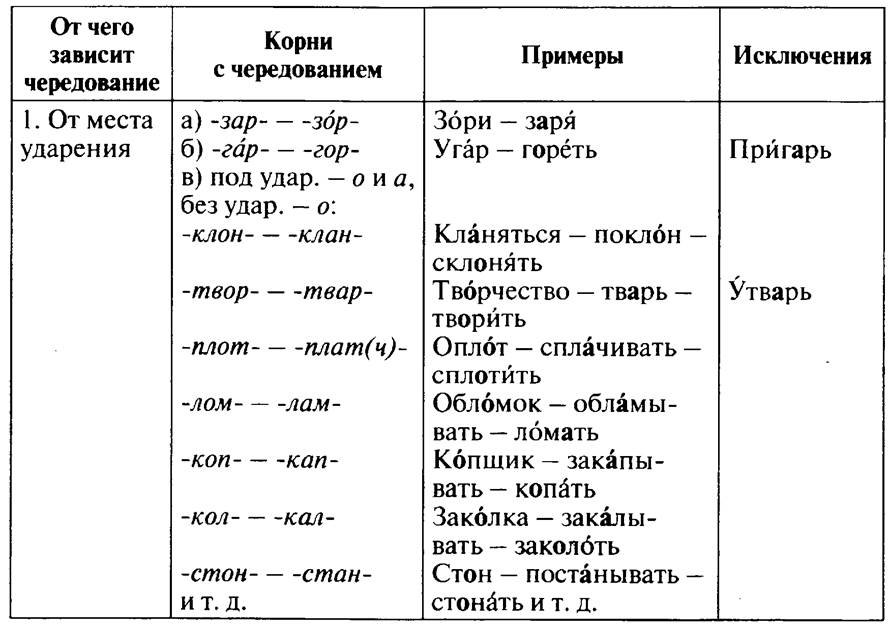 Особо следует обратить внимание на слова с чередующимися сочетаниями в корне. Во-первых, это слова с явлением полногласия — неполногласия, которые в корне имеют сочетания оро — ра, оло — ла: горожанин — гражданин, порох — прах, холодильник — прохлада, молодость — младенец. Во-вторых, это слова с чередованием о — а в корне: копать — подкоп — откапывать, ломать — лом — отламывать, поклонение — поклон — кланяться, сплотить — плот — сплачивать, колоть — укол — укалывать, стонать — стон — постанывать, тварь — творчество — творить.