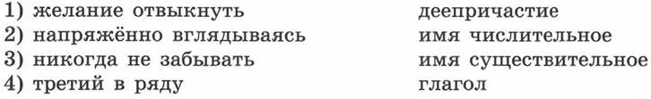 Ответ: 1) имя сущ.; 2) деепр.; 3) глагол; 4) имя числит.