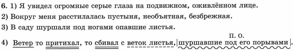 4) Ветер то притихал то сбивал с веток листья шуршавшие под его порывами.