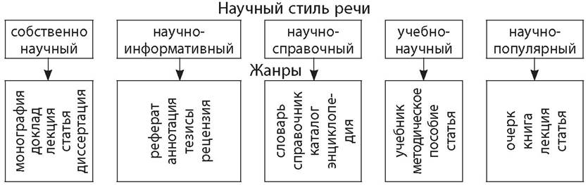 Стилями речи признавались частные реализации стилей, такие как учебная лекция и научный доклад, в основе которых лежит научный стиль. В последнее время лингвисты пришли к выводу, что языковые различия между некоторыми сферами общения столь значительны, что использовать по отношению к ним одно общее понятие «стиль» едва ли целесообразно, поэтому вводится понятие «функциональная разновидность языка». Широкое признание получила типология функциональных разновидностей языка, сравнительно недавно предложенная академиком Д. Б. Шмелёвым. Эта типология такова: