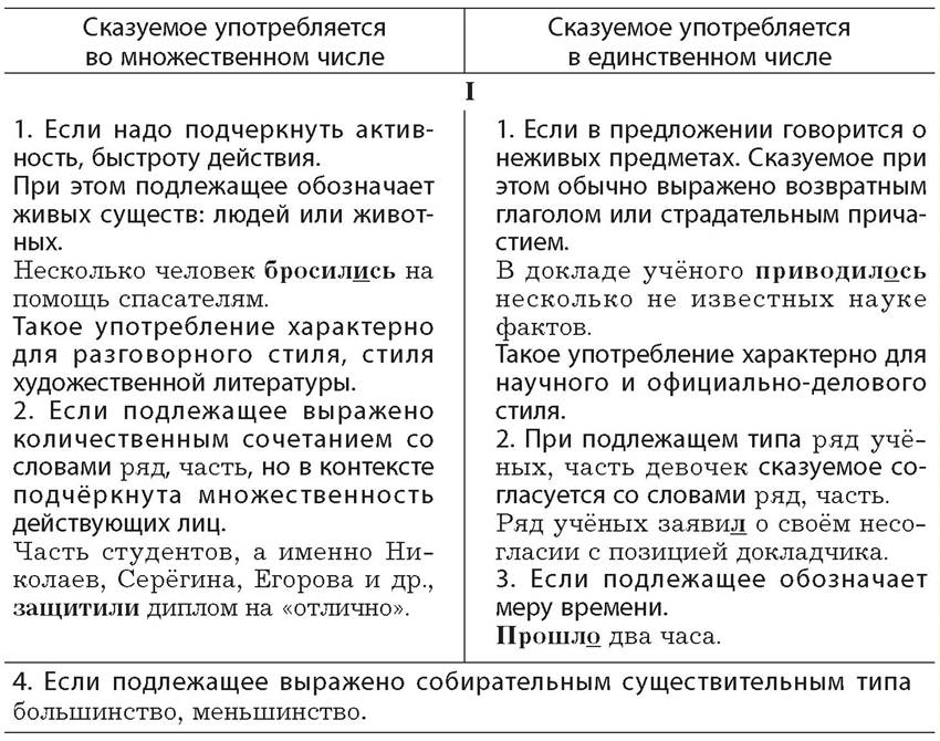 • Сформулируйте устно с опорой на таблицу правила вариантного употребления сказуемого в единственном и множественном числе