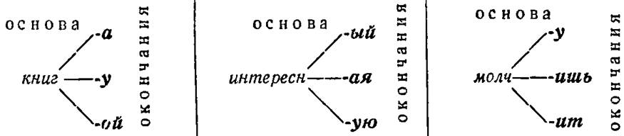 Та часть слова, которая меняется и служит для связи слов, называется окончанием; например: падежные окончания существительных и прилагательных, личные окончания глаголов настоящего и будущего времени.
