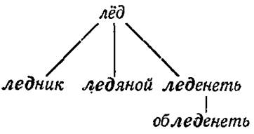 От слов, которые имеются в языке, образуются новые слова. Например, от слова лёд образовались слова ледник, ледяной, леденеть; от слова леденеть образовалось слово обледенеть.