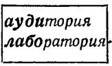 Слова аудитория и лаборатория объединены значением места, где происходит слушание чего-либо (аудитория — зал, в котором читаются лекции, доклады) или производится какая-либо работа (лаборатория). На отношение к слушанию указывает латинский элемент ауди- („слух“), на отношение к работе — лабор- („труд“).