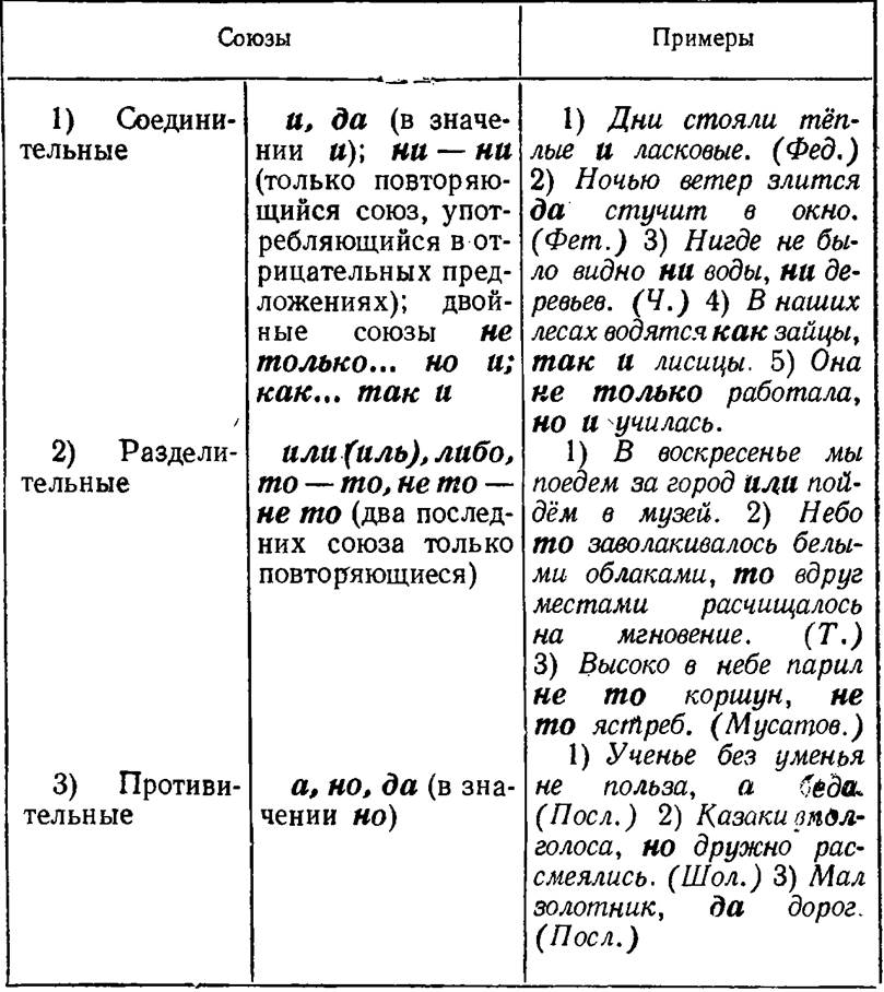 > Сочинительные союзы, соединяющие однородные члены, делятся на три группы: 1) соединительные, 2) разделительные и 3) противительные.