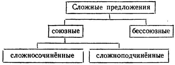 Предложения с союзами и союзными словами делятся на две группы: 1) предложения сложносочинённые, 2) предложения сложноподчинённые.